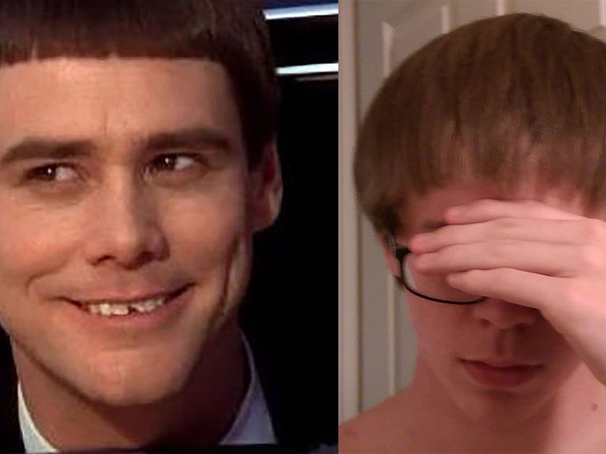 Web A Texas mother is livid after her 16-year-old son came home from school with a haircut that made him look like Jim Carry in Dumb or Dumber but worse Lane. Amyleigh a make-up artist from Halifax was left looking like a character from the film Dumb and Dumber when Francis Plaka was done with the cut. Christmas came early for lucky fans of Jim Carrey and his new film Dumb and Dumber To The actor who is.