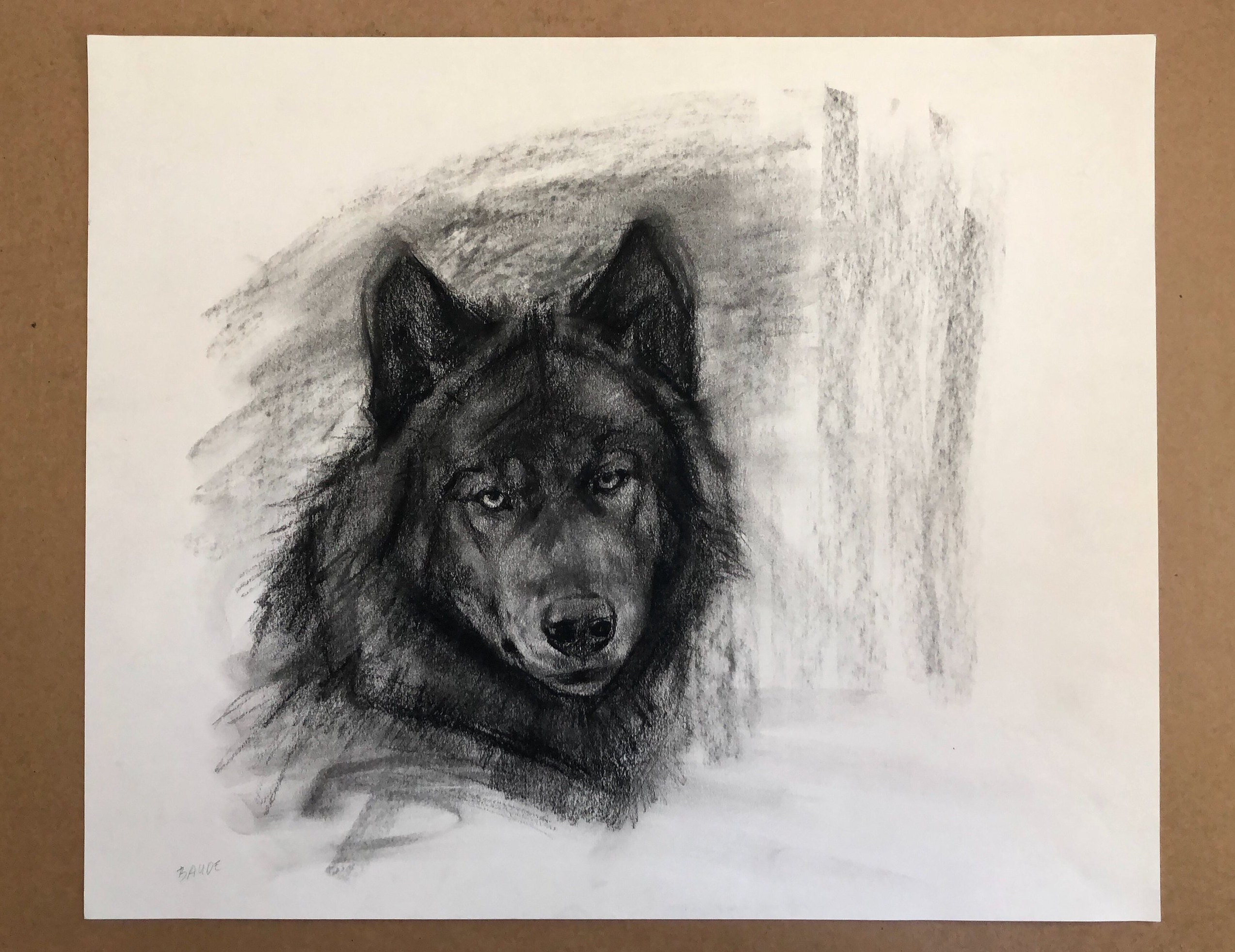 Original Charcoal Drawing Black Wolf Portrait 14x18 Etsy